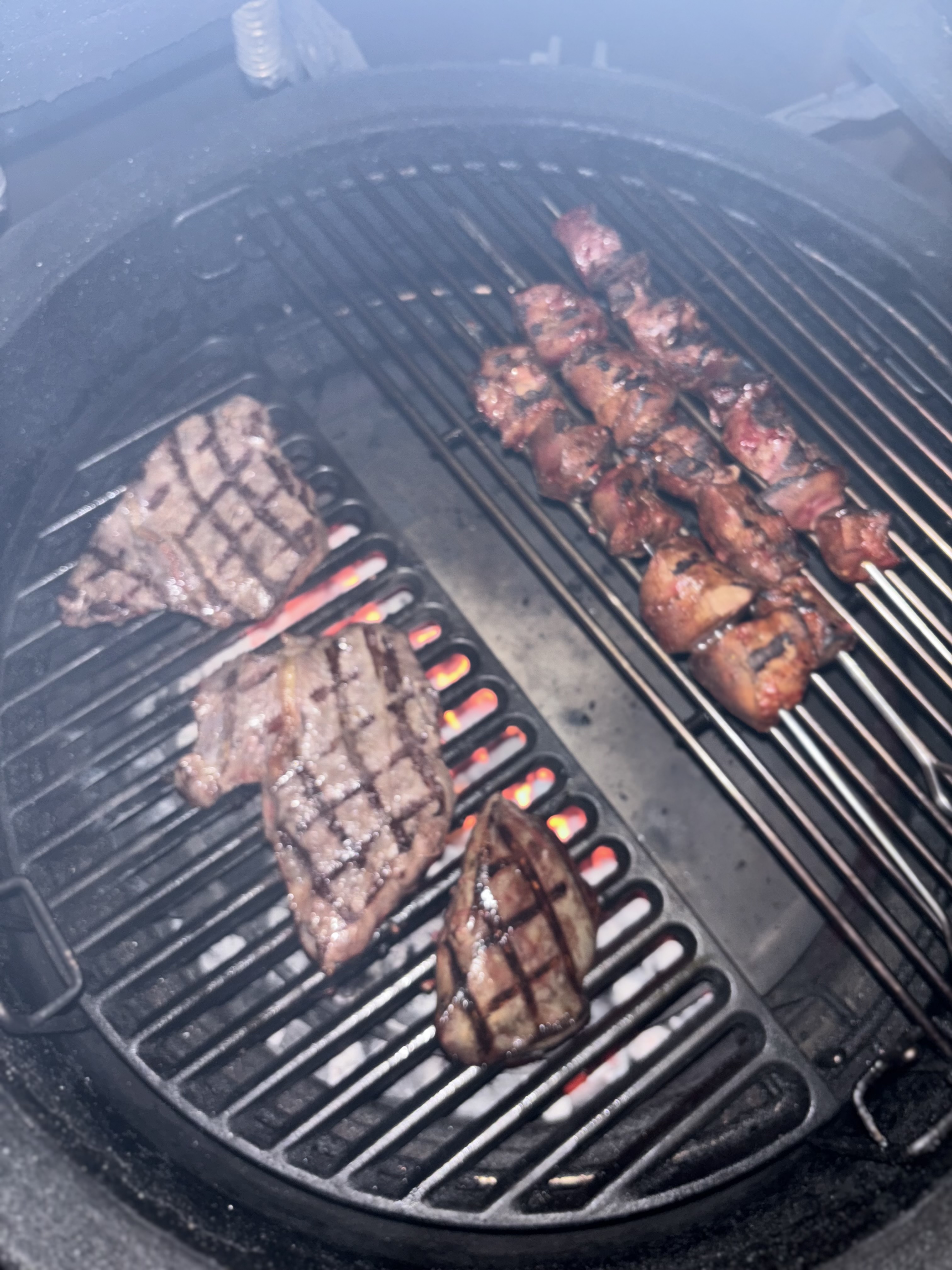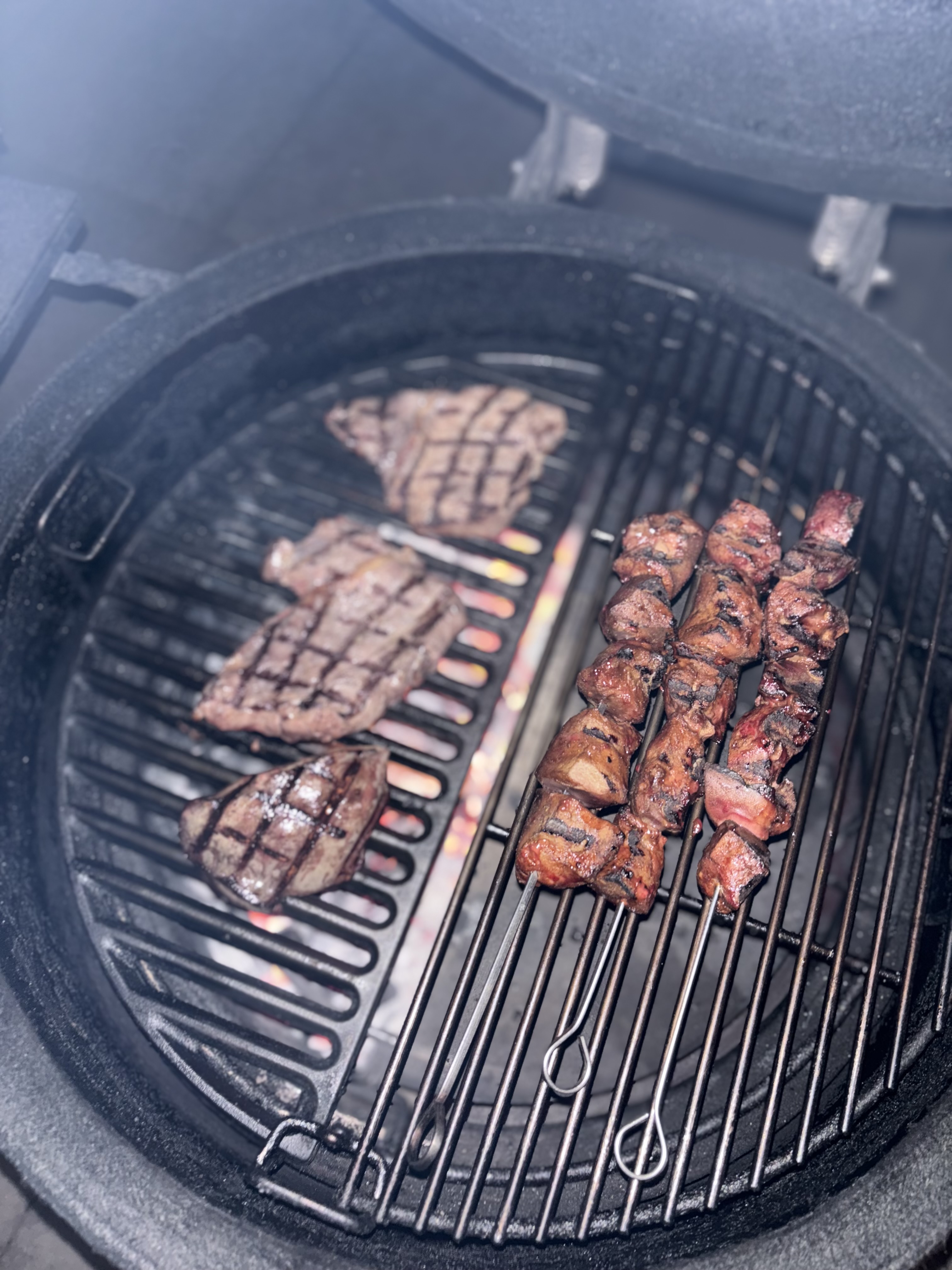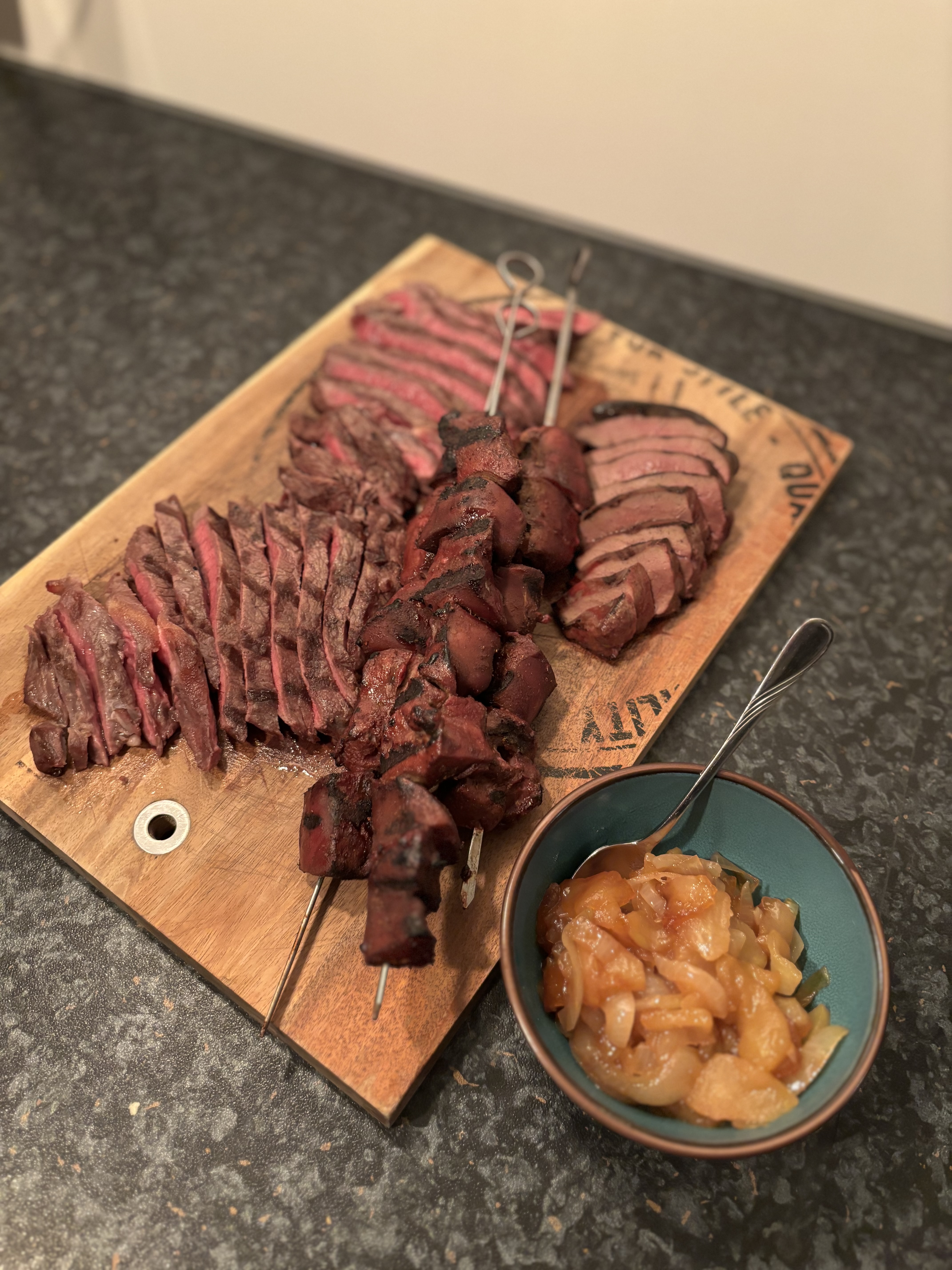 NB. Links op de foto liggen nog wat rosé gegrilde bieflappen van Schotse Hooglander