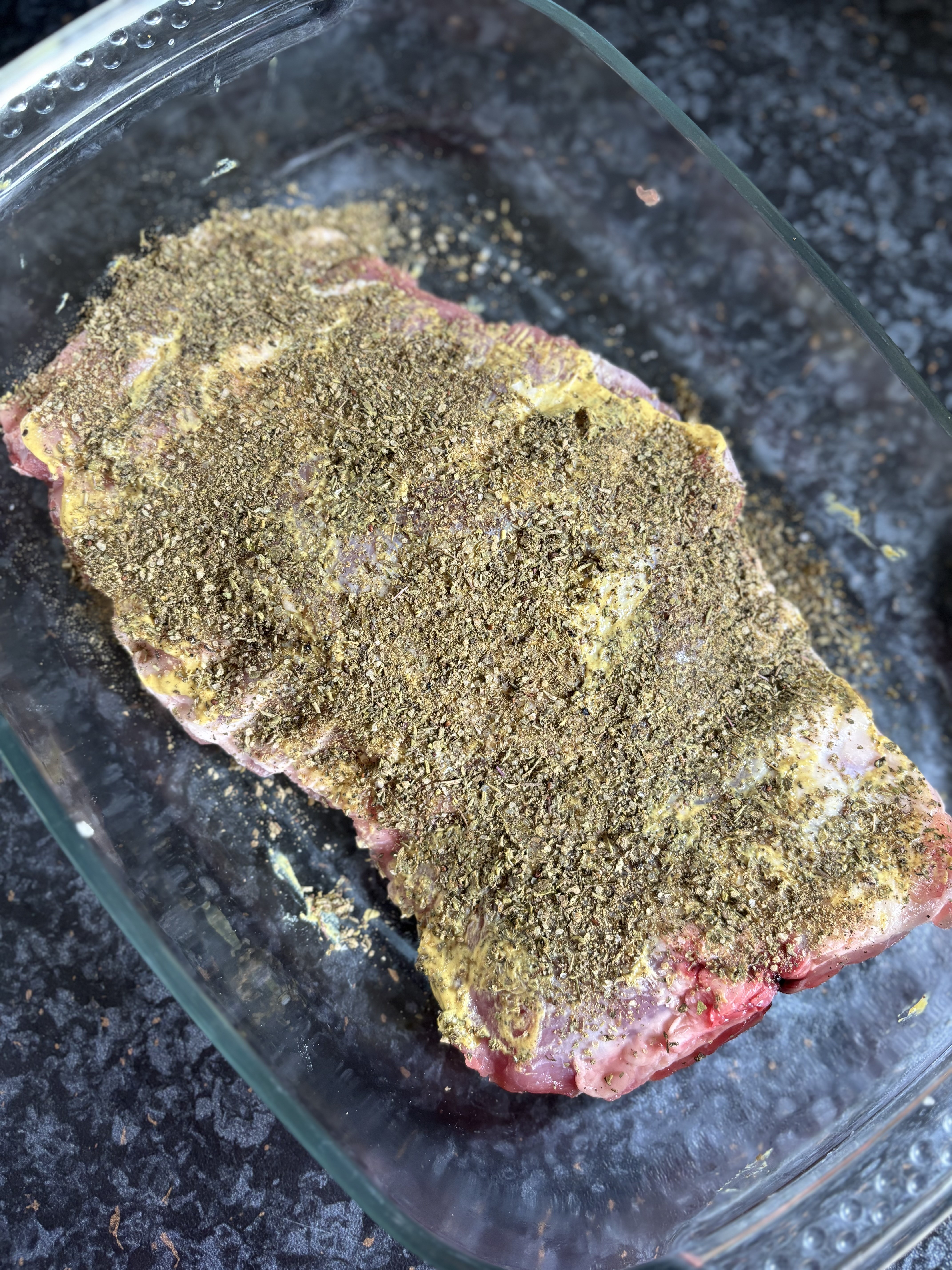 Lamsspareribs met mosterd, kruiden en honey glaze